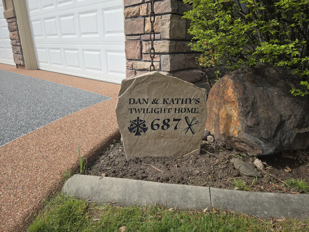 Perfect for a uniquely thoughtful wedding or housewarming gift or to elevate your own landscape, our personalized garden stones can be designed with your custom text on our natural-looking boulders. Choose your design and we’ll craft it for you and ship within 4 business days! Our landscape stones are engraved directly into the surface of our textured, natural-looking boulders and finished with an weatherproof sealant to ensure it lasts a lifetime.