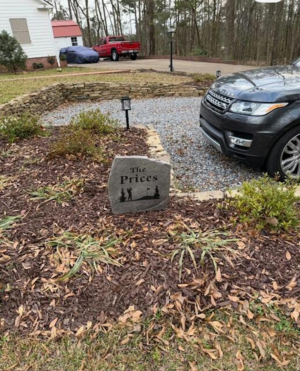The Golf Name Stone is a perfect way to welcome family, friends and guests and show off your favorite hobby. Designed with a crisp, clear font that is easy to read, this garden stone adds simple sophistication and elegance to your landscape. Personalize the landscape stone design with your family name – we’ll craft it for you and ship it within 4 business days! We engrave the address directly into the surface of our textured, realistic stone, and finish with a weatherproof sealant so it will last a lifetime.